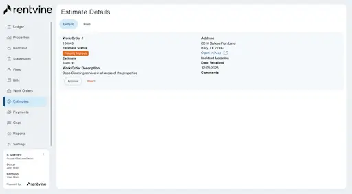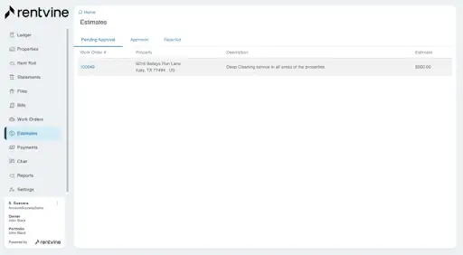 The Estimates tab in your owner portal is where all maintenance estimates sent by your property management company are stored. This section allows you to easily track the status of maintenance work that requires owner approval.